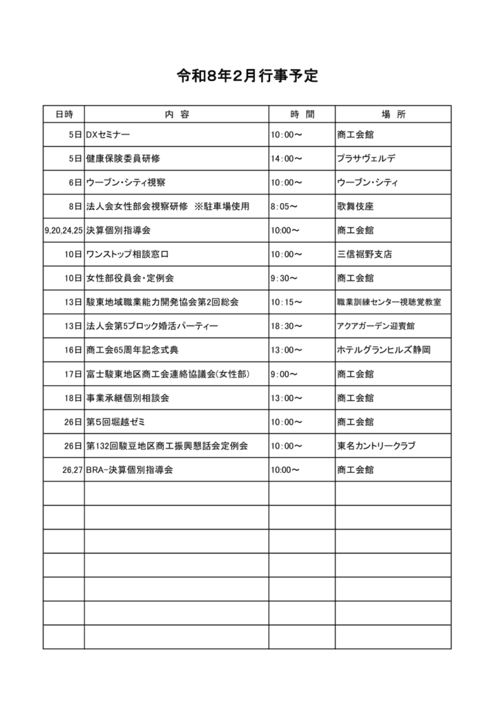 令和8年2月 行事予定
