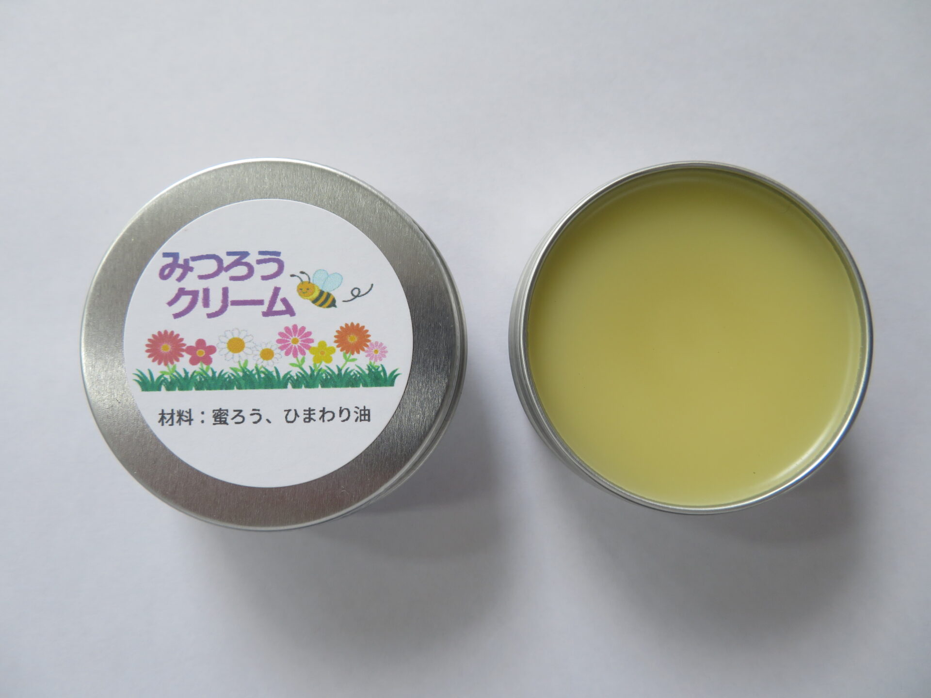 裾野市内で飼育しているミツバチの巣から採った蜜蝋(みつろう)と裾野市内で栽培、収穫したヒマワリの種から搾った100%純粋「ひまわり油」を使用して作ったクリームです。合成界面活性剤を使っていない天然素材100%のオーガニッククリームです。市販のクリームが肌に合わない人に特にお薦めです。